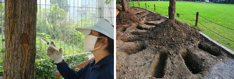 硫酸亞鐵注射法:可以采用注射器將0.3%~1%的硫酸亞鐵溶液快速注射于樹干內(nèi),然后將輸液瓶掛在樹上,讓樹體慢慢吸收,該方法見效快,在3天抹不開即可見效。硫酸亞鐵基施法:在每株成齡大樹用2~2.5千克硫酸亞鐵噴灑在50~100千克有機肥中,經(jīng)過充分拌勻后,沿樹冠外圍挖8~10個小穴,施入拌有硫酸亞鐵的有機肥,然后覆土。